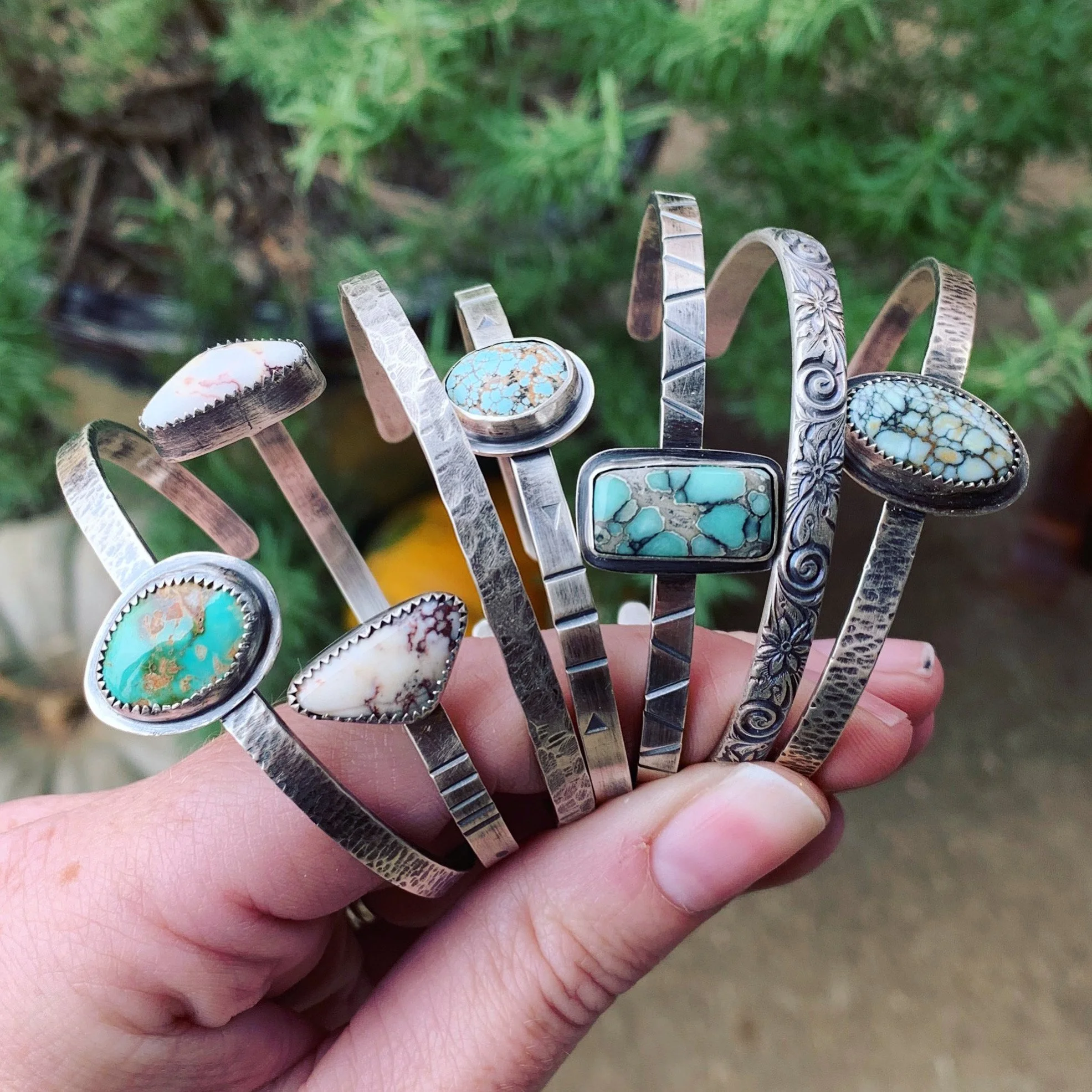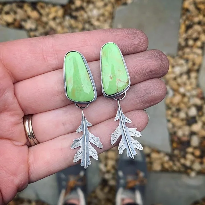 A: I source my metals from Rio Grande, a supplier with a long-standing reputation for quality and integrity in the jewelry community. The stones I use are carefully chosen from trusted lapidary artists who share my commitment to responsible sourcing. Sustainability matters deeply to me, and I make it a priority to work with partners who acquire stones in ways that respect both the environment and the people involved in bringing these beautiful materials to life. Every piece is not only crafted with care but also reflects a mindful approach to how it came to be.